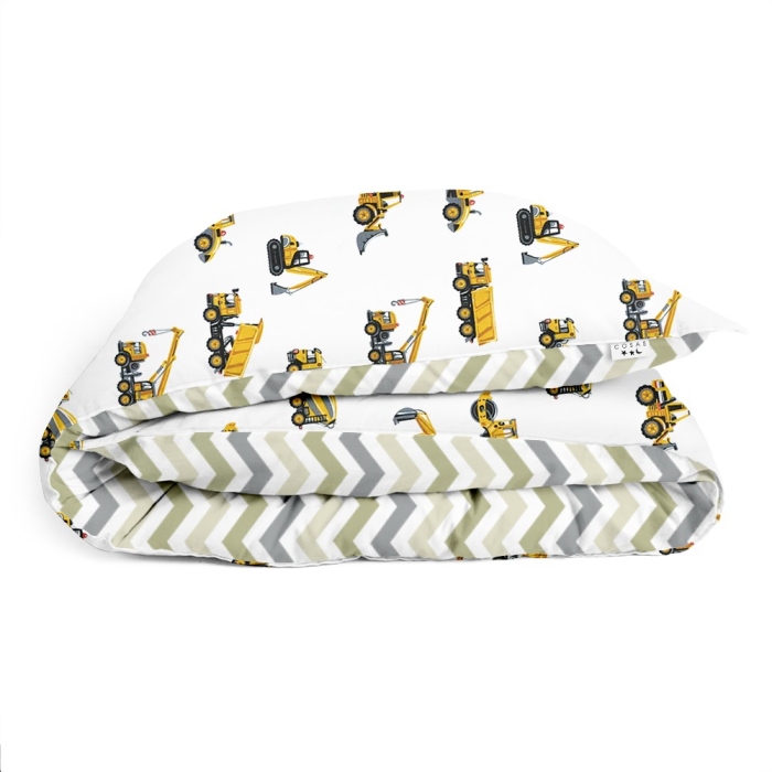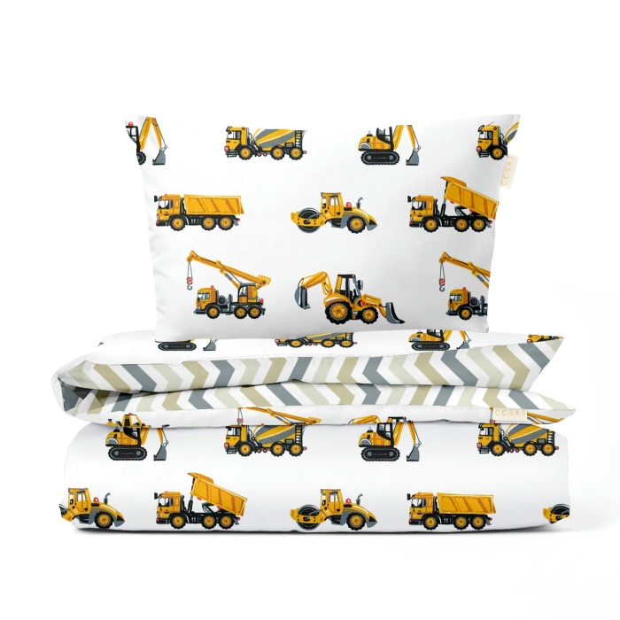 Schnellsuche , самоскид, трактор, авто, машини, зигзаг, зигзаги, Жовтий, Автомобіль, Ранфорс, 110х140 см, Дитяча постіль без простирадла HOPPER