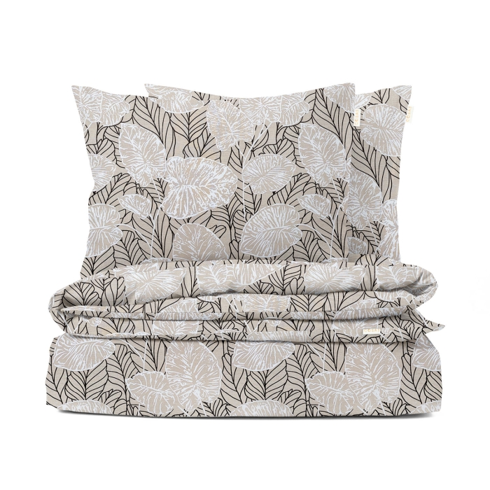 Schnellsuche , листя, листочки, плющ, рослини, Бежевий, Листя, Ранфорс, 180х220 см, Двоспальний комплект без простирадла SAND IVY
