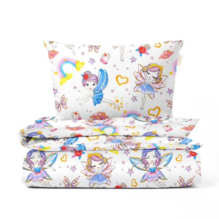 Schnellsuche , веселки, зорі, метелики, квіти, феї, Рожевий, Принцеса, Ранфорс, 155х215 см, Підліткова постіль без простирадла FAIRIES