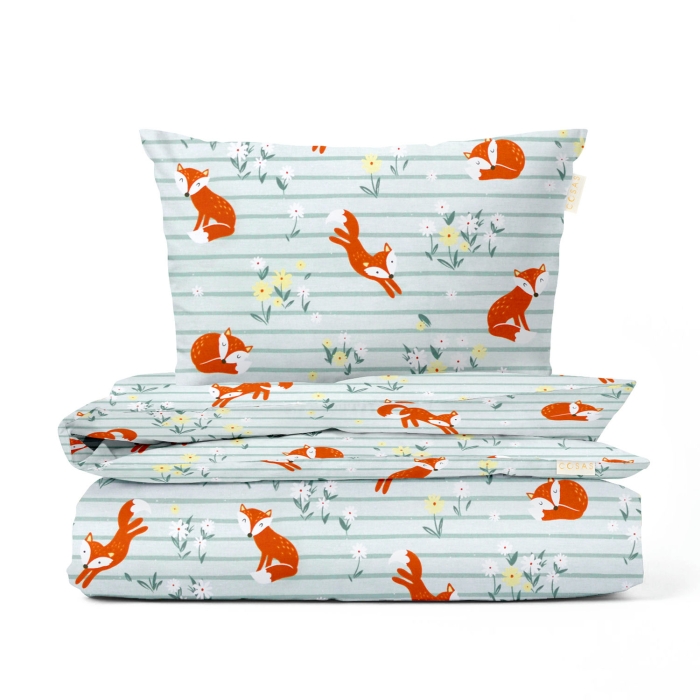 Schnellsuche , лисиця, лисичка, лисички, квіти, квіточки, природа, тварини, звірі, Бірюзовий, Тварини, Ранфорс, 155х215 см, Підліткова постіль без простирадла FOX