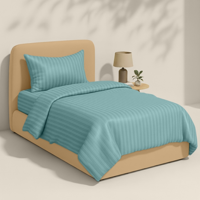 Schnellsuche , СтрайпСатин бірюзовий (Bermuda) Т 22, Бірюзовий, , Сатин, 155х215 см, Підліткова постіль без простирадла сатин BERMUDA