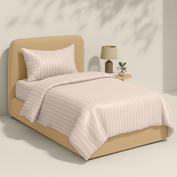 Schnellsuche , СтрайпСатин бежевий (Biscotti) Т 07, Бежевий, , Сатин, 155х215 см, Підліткова постіль без простирадла сатин BISCOTTI