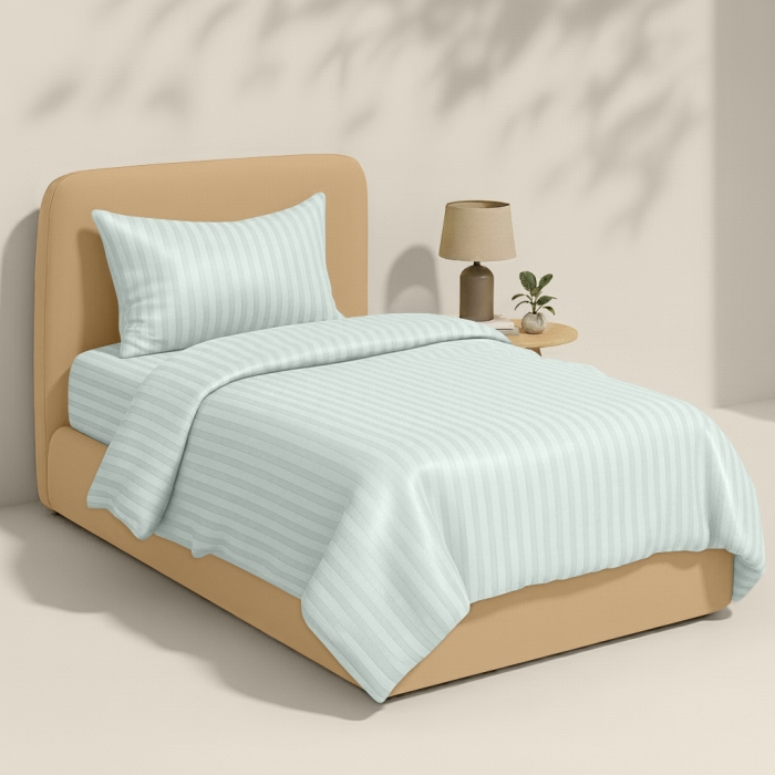 Schnellsuche , СтрайпСатин світло-блакитний (Pistachio) Т 04, М'ята, , Сатин, 155х215 см, Підліткова постіль без простирадла сатин PISTACHIO