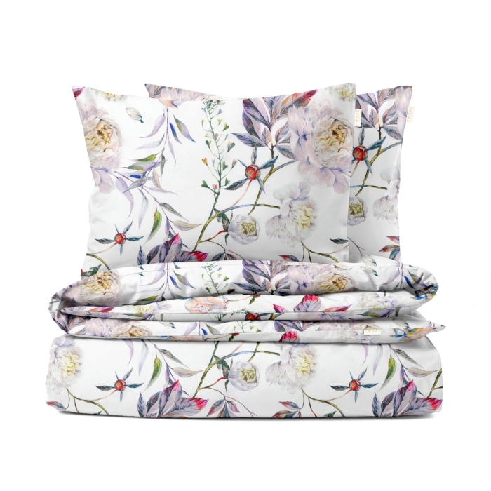 Schnellsuche , квіти, листя, півонії, рослини, природа, Білий, Квіти, Ранфорс, 200х220 см, Євро постіль без простирадла PEONY