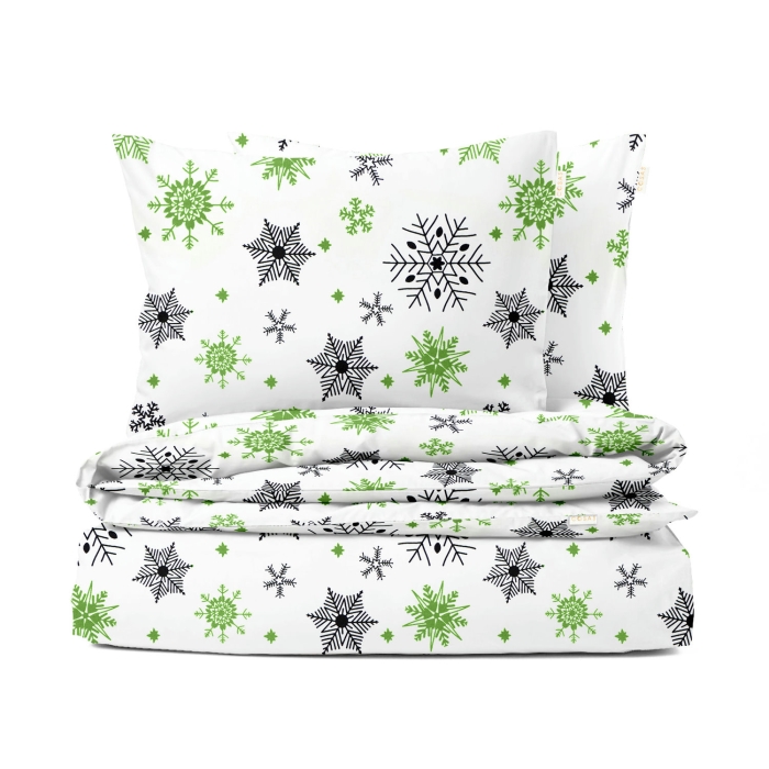 Schnellsuche , , Зелений, Новорічний, Ранфорс, 200х220 см, Євро постіль без простирадла SNOWFLAKES