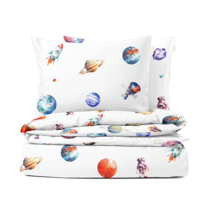 Schnellsuche , , Білий, Космос, Ранфорс, 200х220 см, Євро постіль без простирадла SPACE DREAM