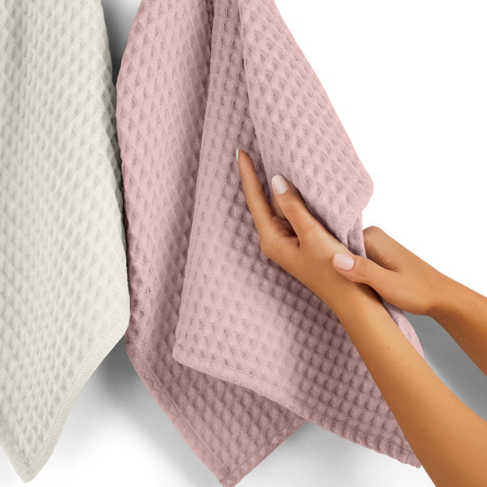 • Завдяки своїй унікальній текстурі, рушники з грецької вафлі мають більшу поверхневу площу, що дозволяє їм швидше висихати порівняно з махровими рушниками.