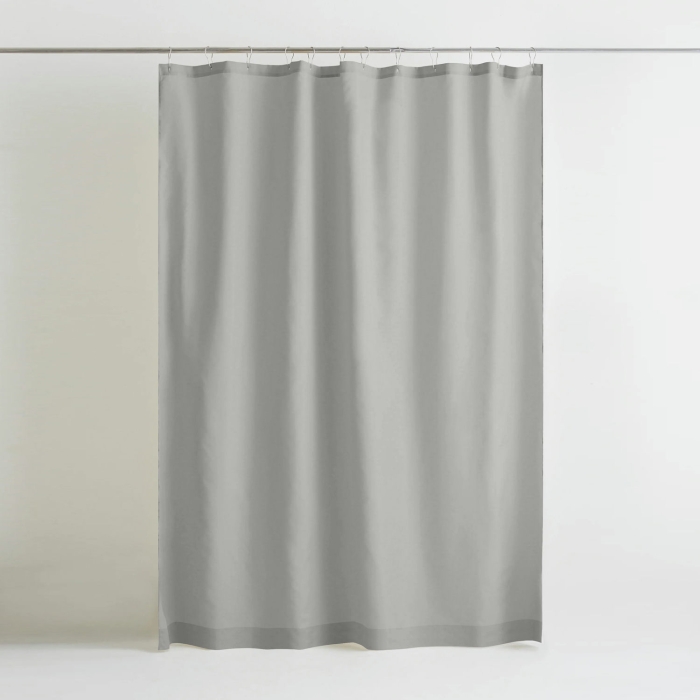 Розмір шторки для душу та ванни COSAS — 180×200 см, у комплекті 1 шторка та 12 кілець для карнизу.