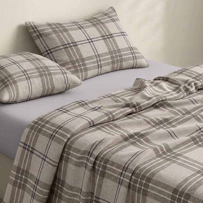 Євро постільна білизна фланель з простирадлом на резинці SAND TARTAN CS2