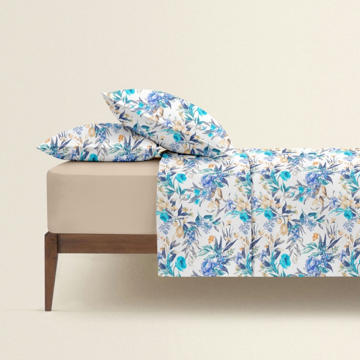 Schnellsuche , гілки, листя, рослини, природа, квіти, Бірюзовий, Квіти, Ранфорс, 175х210 см, Підковдра двоспальна 175х210 FLORAL