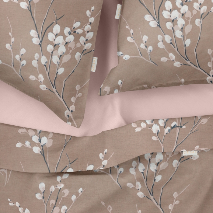 Schnellsuche , гілка, гілочка, верба, Коричневий, Листя, Ранфорс, 175х210 см, Підковдра двоспальна 175х210 FLOWER BUDS