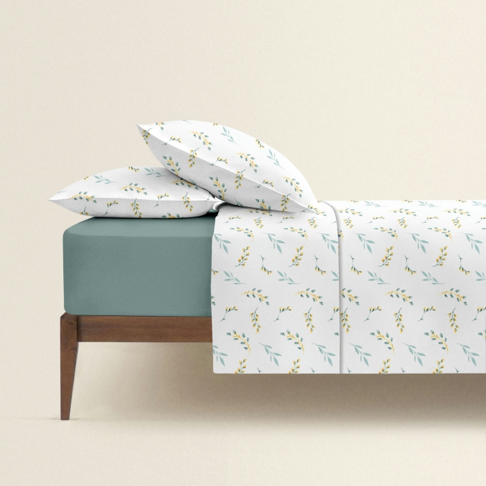 Schnellsuche , гілки, гілочки, бруньки, рослини, природа, М'ятний, Листя, Ранфорс, 175х210 см, Підковдра двоспальна 175х210 PINE BRANCHLETS