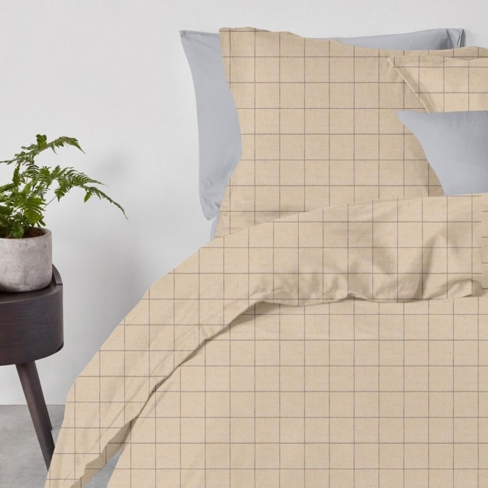 Schnellsuche , клітинка, Бежевий, Геометрія, Ранфорс, 220х240 см, Підковдра євро 220х240 BEIGE GEOMETRY