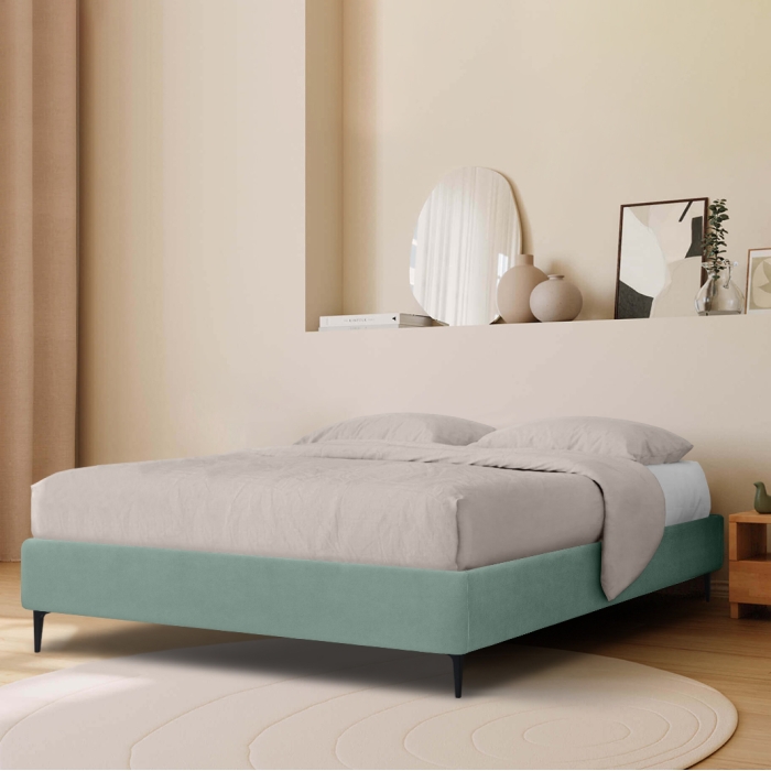 Для оббивки ліжка COSAS використовується м'який матовий велюр.