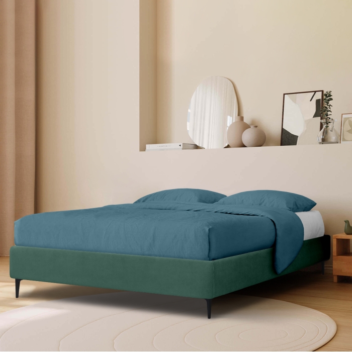 Для оббивки ліжка COSAS використовується м'який матовий велюр.