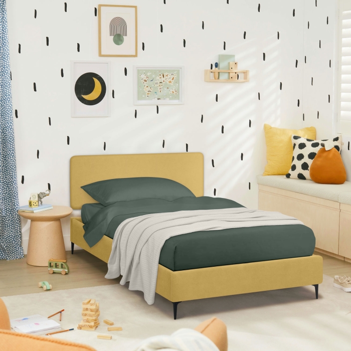 Schnellsuche , , Гірчичний, , Натуральне дерево, 90х200 см, Ліжко односпальне Kiwi Curcuma 90х200