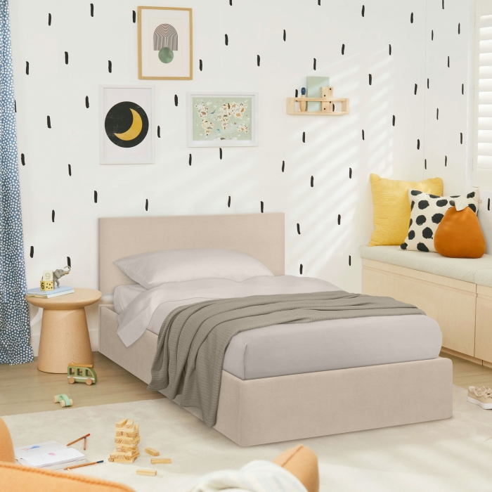 Каркас ліжка покритий пінополіуретаном та синтепоном для м'якості та комфорту.
