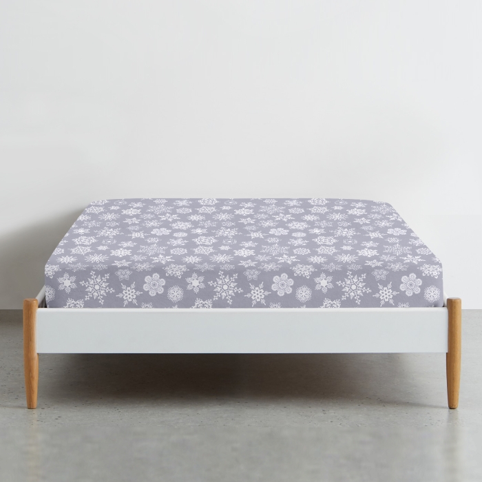 Schnellsuche , Сніжинки білі на сірому, Аспарагус, Новорічний, Ранфорс, 160х200х20 см, Набір простирадло на резинці 160х200 ASPARAGUS SNOWFLAKES