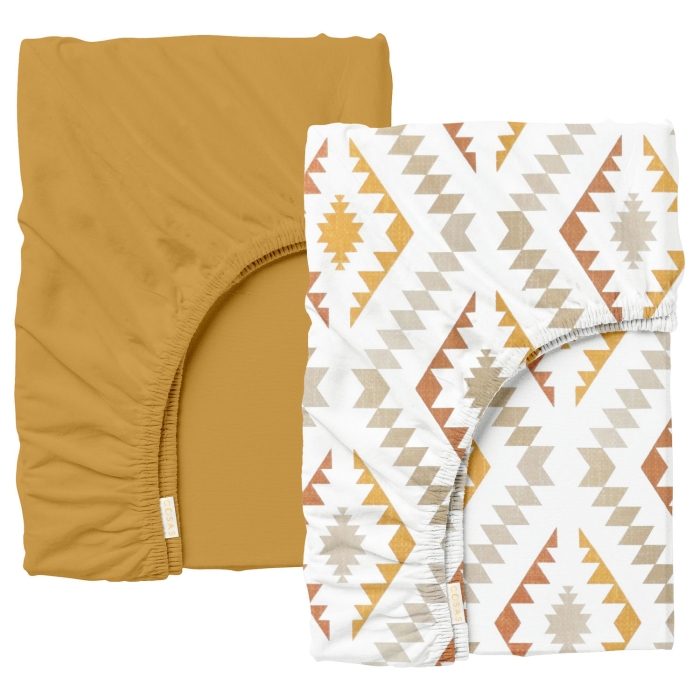 Schnellsuche , , Гірчичний, Геометрія, Ранфорс, 160х200х20 см, Набір простирадло на резинці 160х200 BOHO FLAME