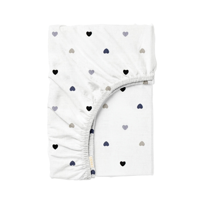 Schnellsuche , Серця сіро-чорні на білому, Стальний, Серця, Ранфорс, 160х200х20 см, Набір простирадло на резинці 160х200 STEEL LOVE