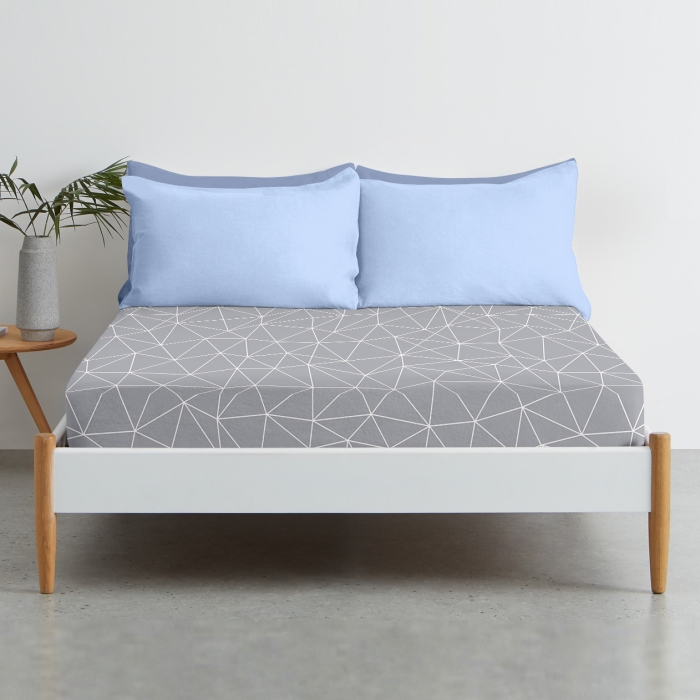 Schnellsuche , , Блакить, Геометрія, Ранфорс, 200х200х20 см, Набір простирадло на резинці 200х200 STONE LINES