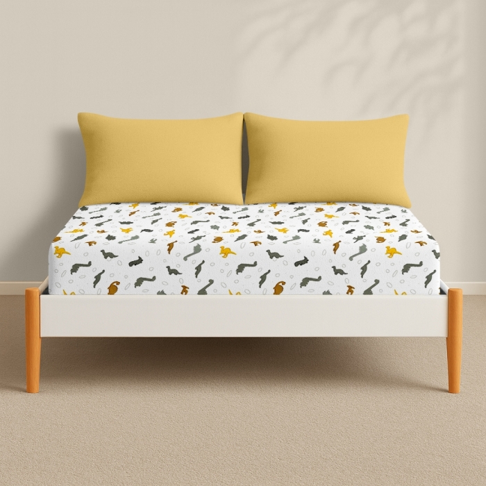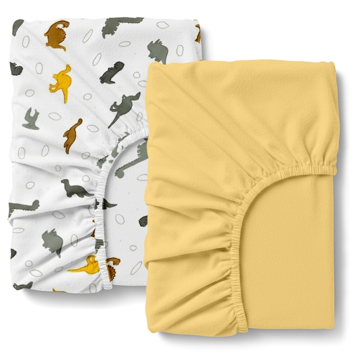Schnellsuche , , Бежевий, Тварини, Фланель, 60х120х12 см, Набір простирадло на резинці в дитяче ліжечко 60х120 фланель DINO WORLD