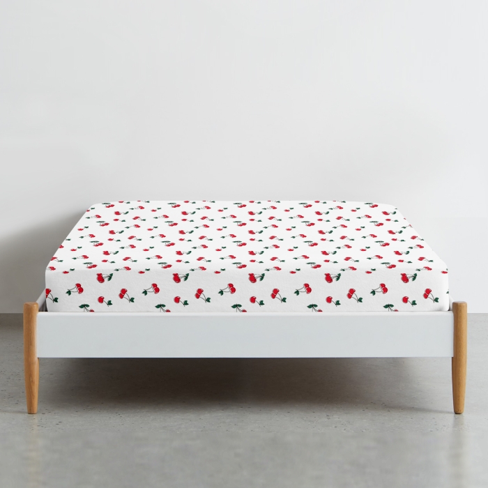 Schnellsuche , ягоди, ягідка, вишня, вишні, листочки, Помаранчевий, Рослини, Ранфорс, 90х200х20 см, Набір простирадло на резинці 90х200 CHERRY