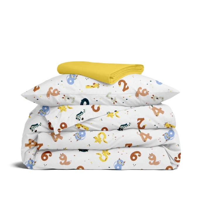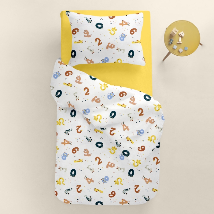 Schnellsuche , цифри, числа, звірі, звірята, жирафа, зебра, котик, Бежевий, Тварини, Ранфорс, 110х140 см, Дитяча постільна білизна в ліжечко ANIMALS