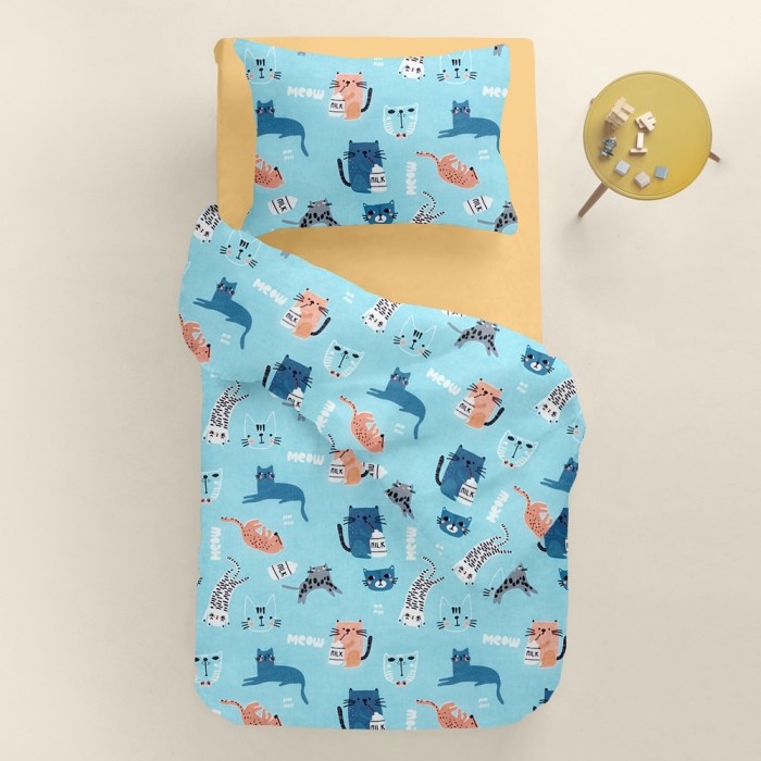 Schnellsuche , , Бірюзовий, Тварини, Ранфорс, 110х140 см, Дитяча постільна білизна в ліжечко CATS
