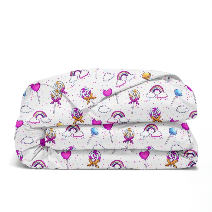 Schnellsuche , льодяники, цукерки, солодощі, хмарка, хмаринки, веселка, Фуксія, Герої, Ранфорс, 110х140 см, Дитяча постільна білизна в ліжечко LOLLIPOPS