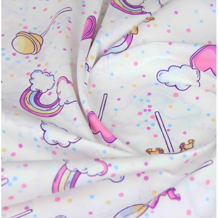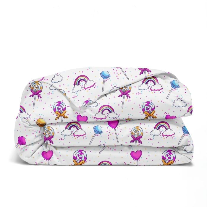 Schnellsuche , льодяники, цукерки, солодощі, хмарка, хмаринки, веселка, Рожевий, Солодощі, Ранфорс, 110х140 см, Дитяча постільна білизна в ліжечко LOLLIPOPS