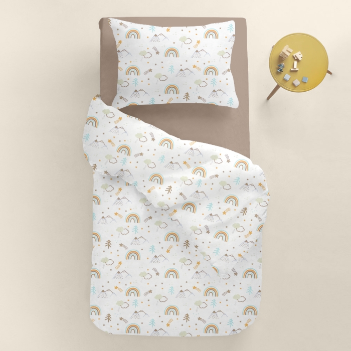Schnellsuche , гори, хмара, хмаринки, зірки, веселка, Бежевий, Природа, Ранфорс, 110х140 см, Дитяча постільна білизна в ліжечко MOUNTAINS