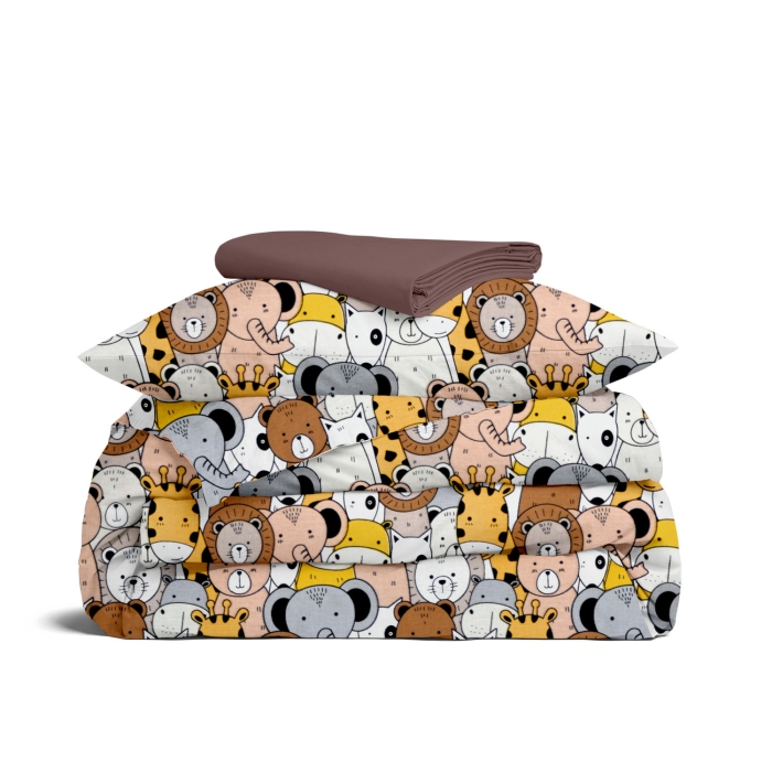 Schnellsuche , , Коричневий, Тварини, Ранфорс, 110х140 см, Дитяча постільна білизна в ліжечко SAFARI ANIMALS