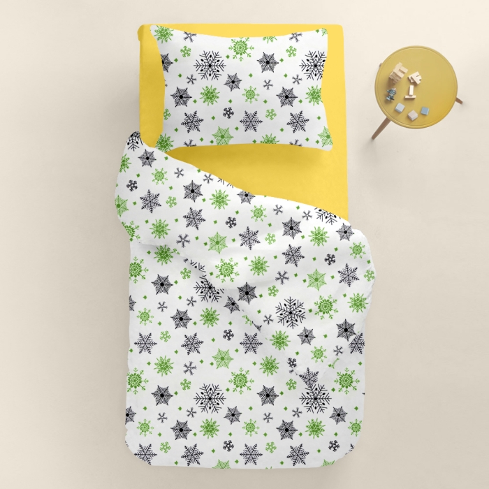 Schnellsuche , , Зелений, Новорічний, Ранфорс, 110х140 см, Дитяча постільна білизна в ліжечко SNOWFLAKES
