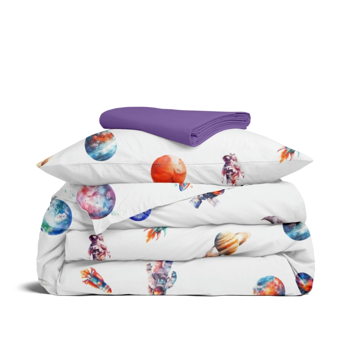 Schnellsuche , , Білий, Космос, Ранфорс, 110х140 см, Дитяча постільна білизна в ліжечко SPACE DREAM