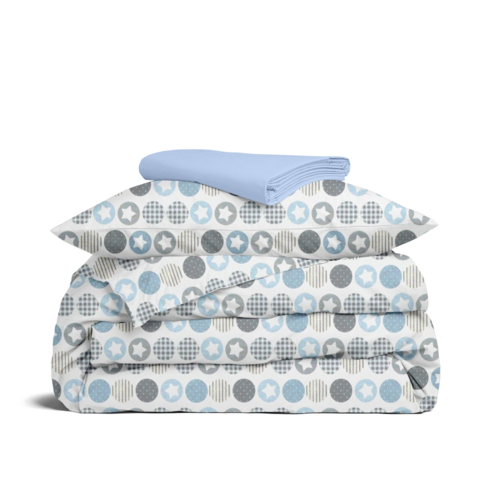 Schnellsuche , зорі, зірки, смужки, клітинки, крапки, кружечки, геометрія, Сірий, Зорі, Ранфорс, 110х140 см, Дитяча постільна білизна в ліжечко STARS