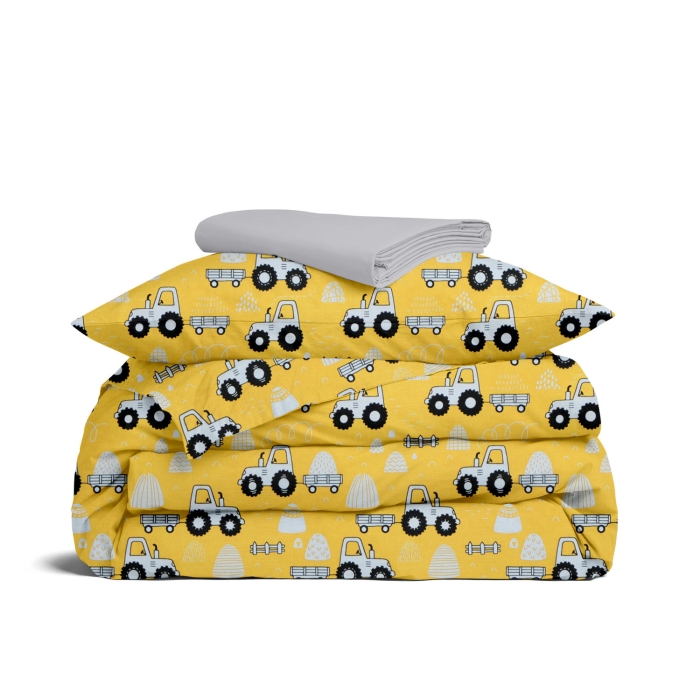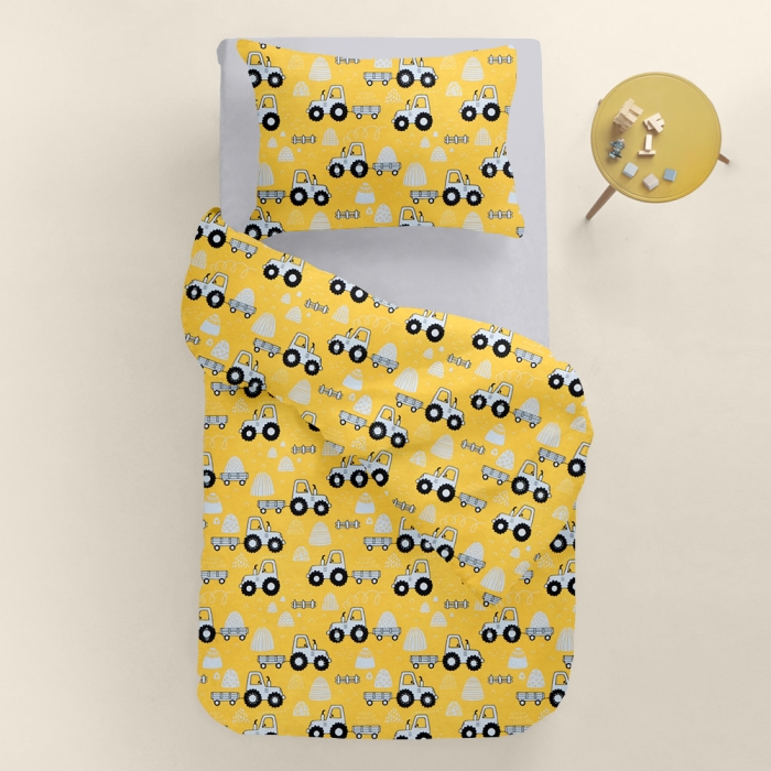 Schnellsuche , , Жовтий, Автомобіль, Ранфорс, 110х140 см, Дитяча постільна білизна в ліжечко TRACTORS