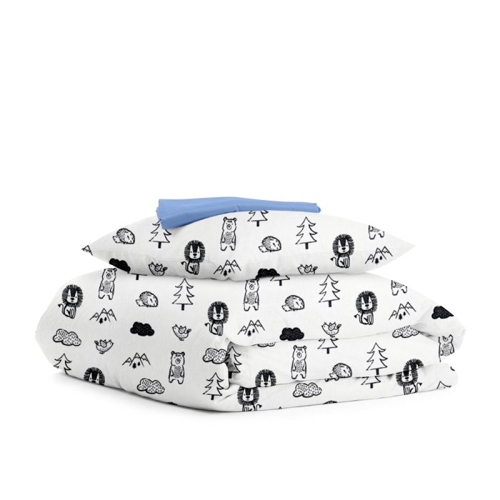 Простирадло на резинці 60х120х12 см - 1 шт. Підодіяльник 110х140 см - 1 шт. Наволочка 40х60 см - 1 шт.