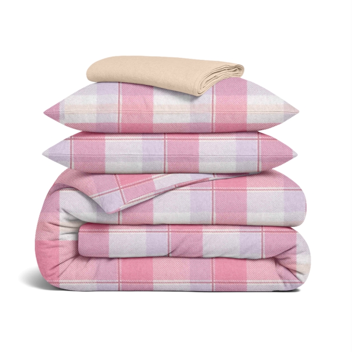 Полуторна постільна білизна фланель з простирадлом на резинці AMETHYST TARTAN