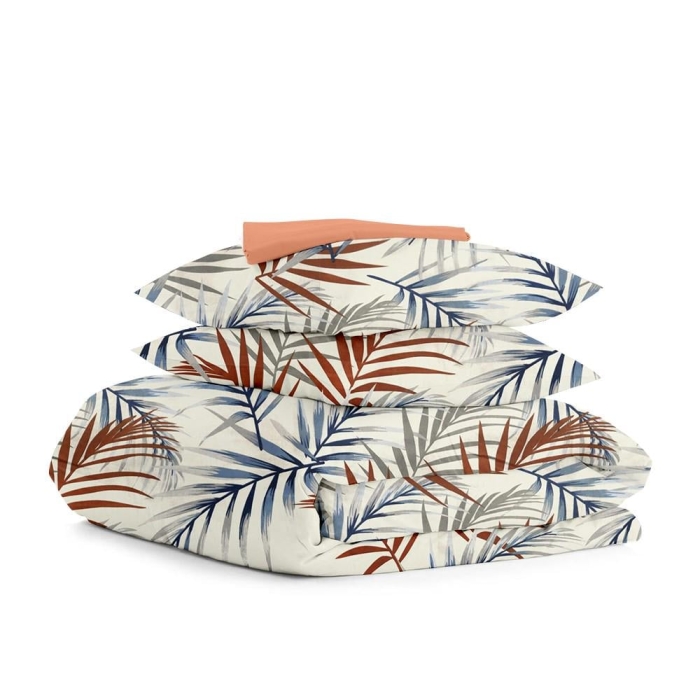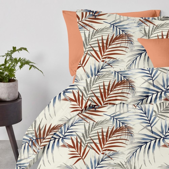 Полуторна постільна білизна з простирадлом на резинці BEIGE FOLIAGE
