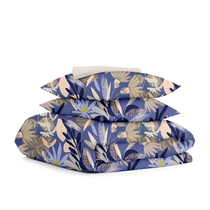 Полуторна постільна білизна з простирадлом на резинці EXOTIC FLOWERS CS1