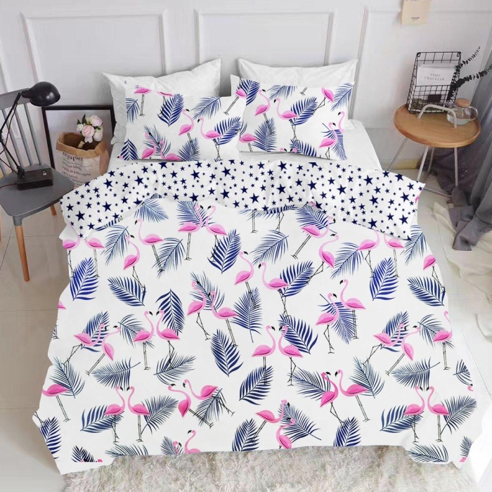 Полуторна постільна білизна з простирадлом на резинці FLAMINGO