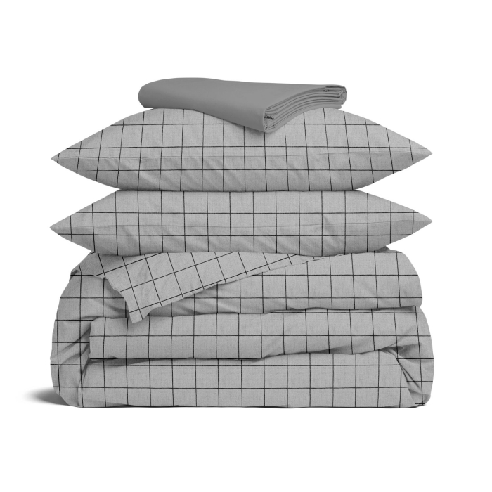 Полуторна постільна білизна з простирадлом на резинці GREY GEOMETRY CS1