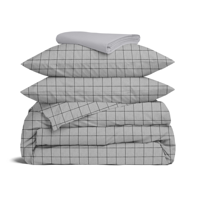 Полуторна постільна білизна з простирадлом на резинці GREY GEOMETRY