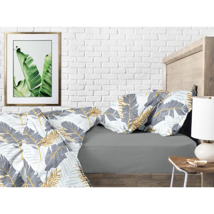 Полуторна постільна білизна з простирадлом на резинці GREY PALM CS1
