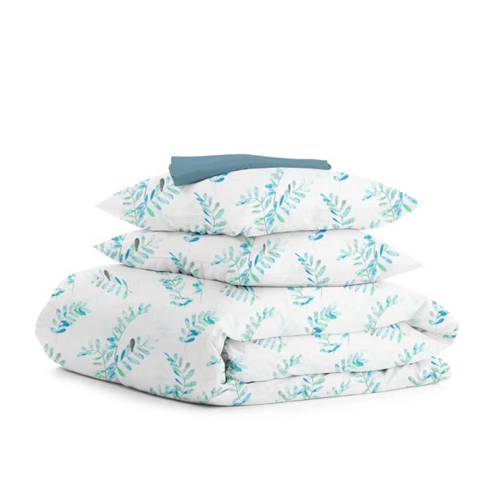 Полуторна постільна білизна з простирадлом на резинці MINT FOLIAGE