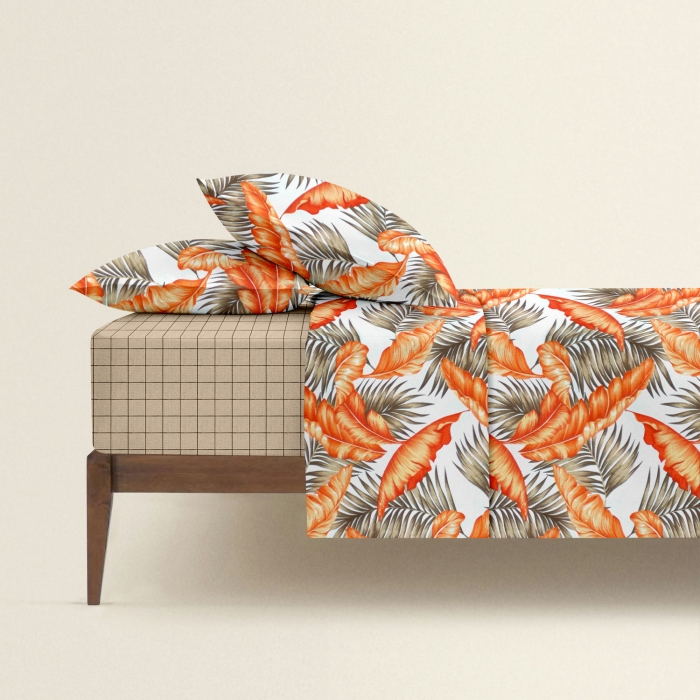 Полуторна постільна білизна з простирадлом на резинці ORANGE PALMS CS2
