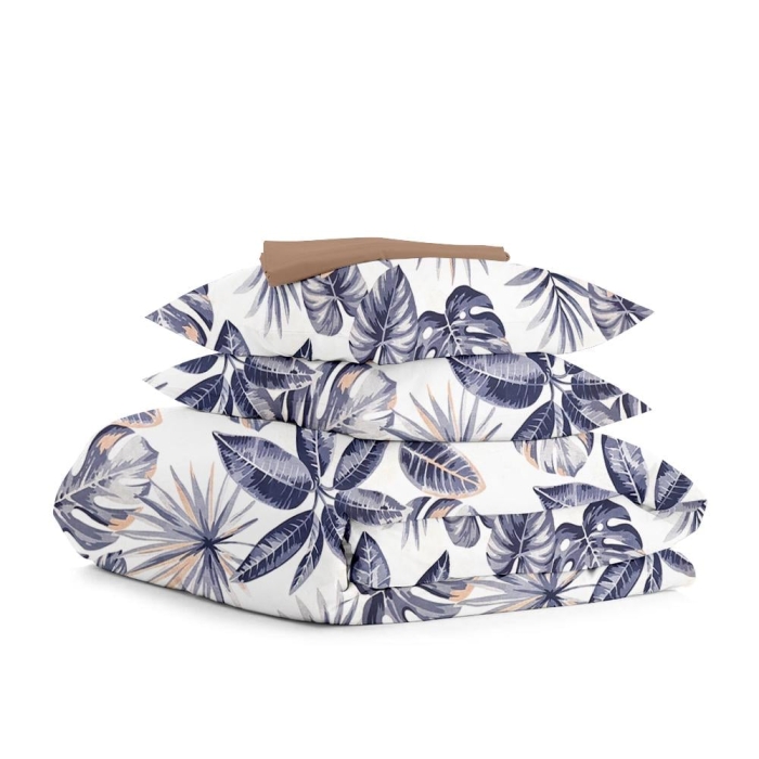 Полуторна постільна білизна з простирадлом на резинці PALM LEAVES CS1