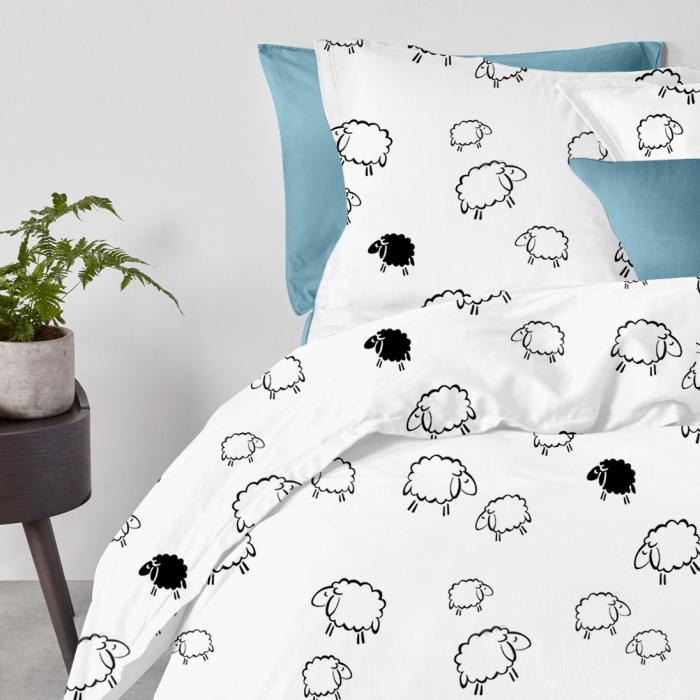 Полуторна постільна білизна з простирадлом на резинці SHEEP BLACK