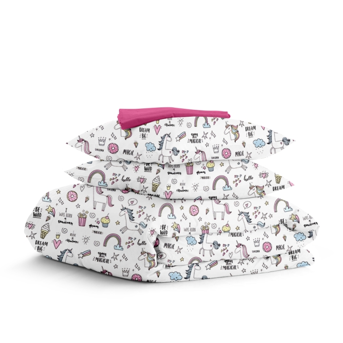 Полуторна постільна білизна з простирадлом на резинці UNICORN & SWEETS CS3